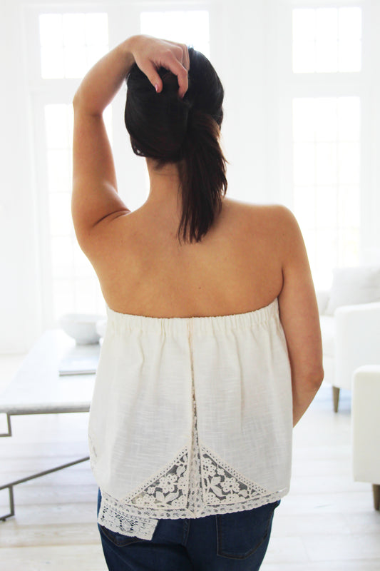 Ophelia Vintage Linen Strapless Top