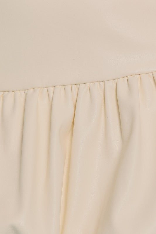 Super soft faux leather bubble skirt with side zipper. Fits true to size and has some stretch to it.